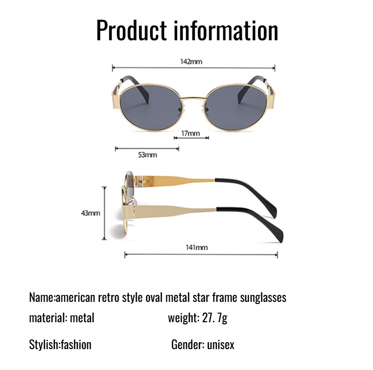Fashion Sunglasses Metal Round Sunglasses Vintage American Fashion Sunglasses Lenses Oval Sunglasses